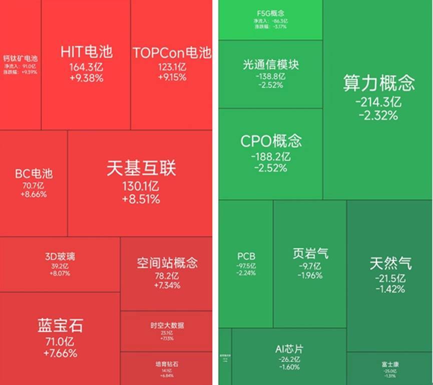 1月23日,A股三大指数集体上涨。截至收盘,沪指涨0.33%报4136.16点,深成指涨0.79%报14439.66点,创业板指涨0.63%报3349.5点。从板块行情上来看,今日表现较好的是HIT电池、天基互联和空间站概念鑫策略,而算力概念、CPO概念和天然气等板块下跌。