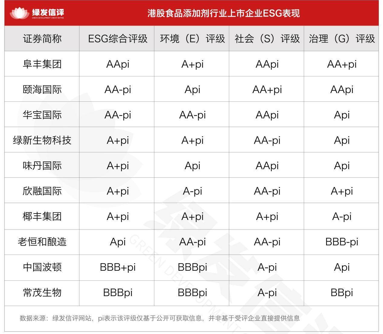 中国财富网讯r在健康消费浪潮与全球可持续发展目标的双重驱动下,食品添加剂行业正经历一场深刻的价值观重塑。其角色已超越传统功能赋予者,转而成为连接农业可持续性、食品安全信任与终端健康需求的关键枢纽。近日,海南绿色发展信用评级有限公司(以下简称“绿发信评”)发布的港股上市企业ESG主动评级结果显示,食品添加剂行业ESG整体表现稳健,领先企业正系统性地将ESG要素融入核心战略,以创新实践回应市场对“更安全、更健康、更绿色”产品的期待金财配资,行业可持续发展格局初显。